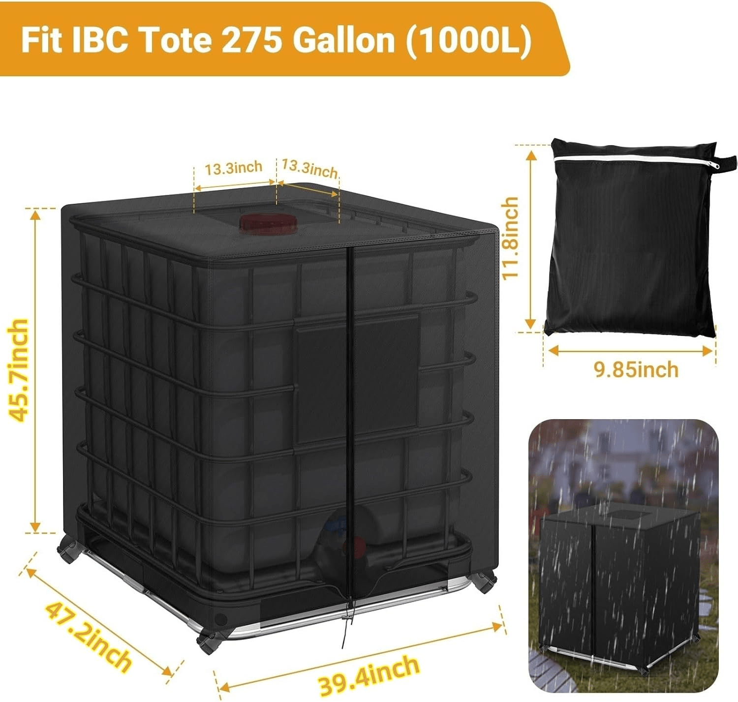 Protect your investment with this premium IBC Tote Cover designed to fit 275-gallon IBC totes. Made from high-quality 420D waterproof Oxford cloth, this cover offers outstanding protection against rain, UV rays, dust, and outdoor elements, keeping your tote and contents clean, dry, and secure.